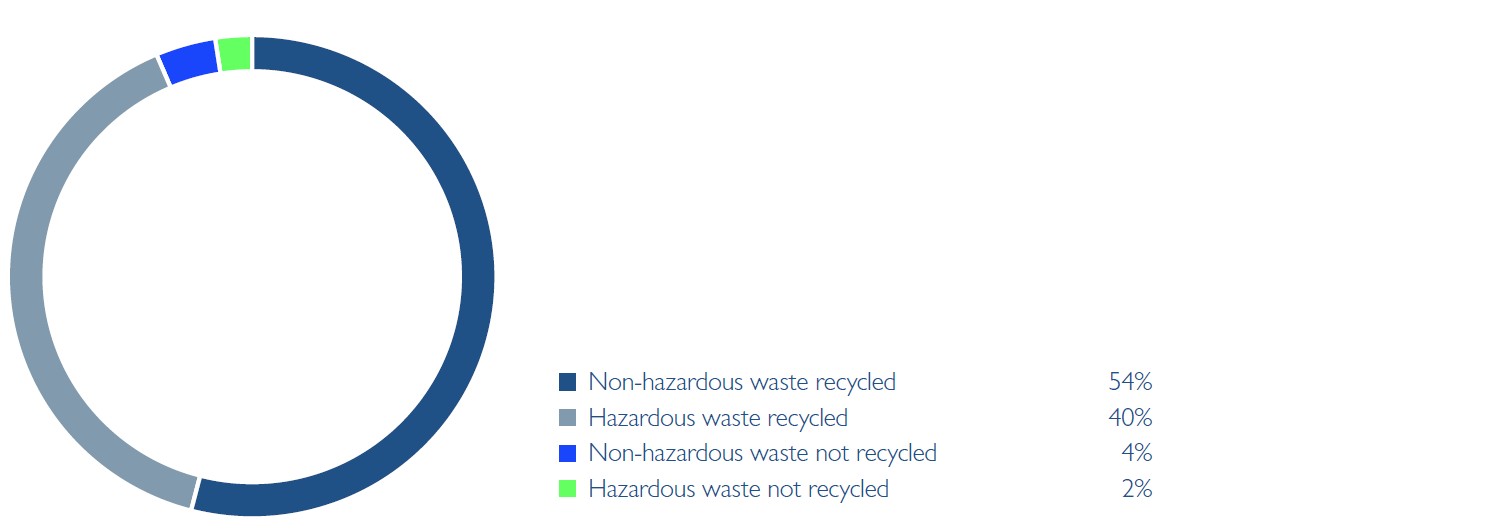In 2025, we continued to enhance the accuracy, transparency, and reliability of our reporting processes through further improvements to our waste collection recording system across all business units. This initiative is evolving year by year, enabling us to build a more comprehensive and detailed understanding of our waste streams. As our monitoring and data capture methods become more robust, we are better able to identify the types, sources, and volumes of waste generated within our operations. While this enhanced monitoring has led to an increase in reported waste volumes compared with 2024, the figures now provide a more accurate and transparent representation of the true scale and nature of the waste we produce. These insights are helping us to better target reduction initiatives, drive efficiency, and support our broader sustainability objectives.
